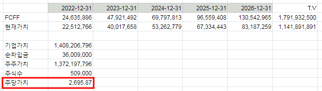 반쯤은 심심풀이로 해본 가치평가입니다.