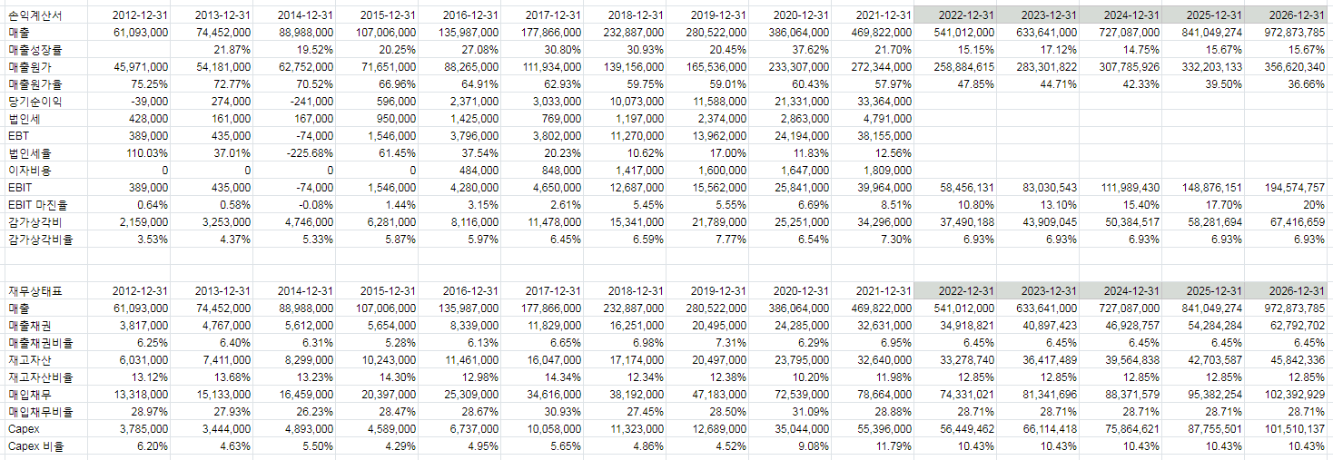 그래도 한번 가치평가를 해보자 싶어서 몇주전에 해본 것을 올려봅니다.