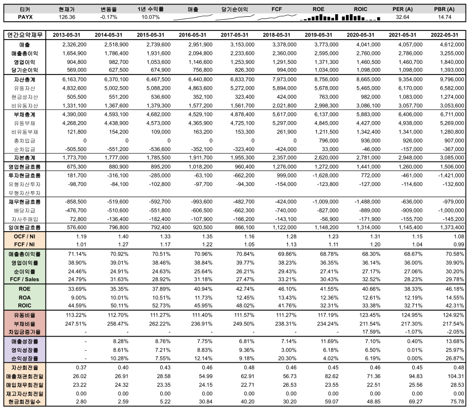 그래도 PAYX는 제 취향이라... 사실 이미 분석끝냈지만,